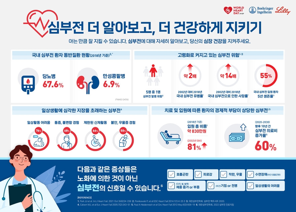 - 심부전: 심장이 몸의 요구사항을 충족시키지 못할 때 발생하는 만성 질환입니다.
